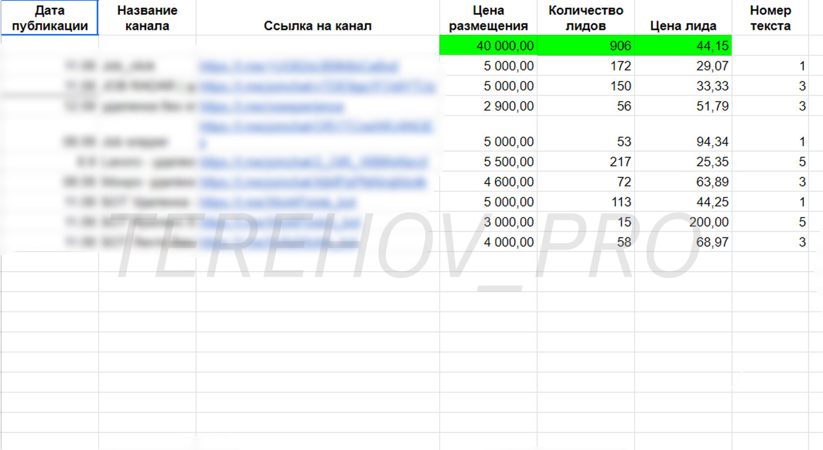Количество и цена лида: 14 823 лида по 63 рубля