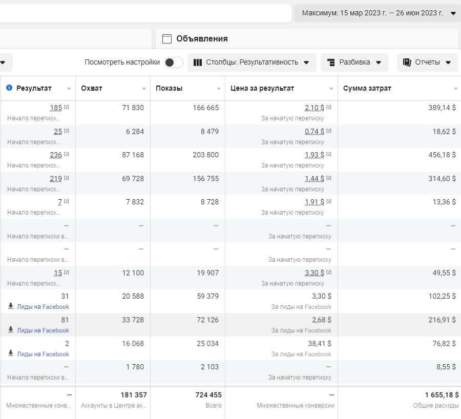 Остановились на WhatsApp, так как этот мессенджер в Казахстане самый популярный, клиенту удобно обрабатывать заявки, FB* может оптимизировать рекламу на написавших. Что делаем сейчас:- Тестируем новые рекламные связки