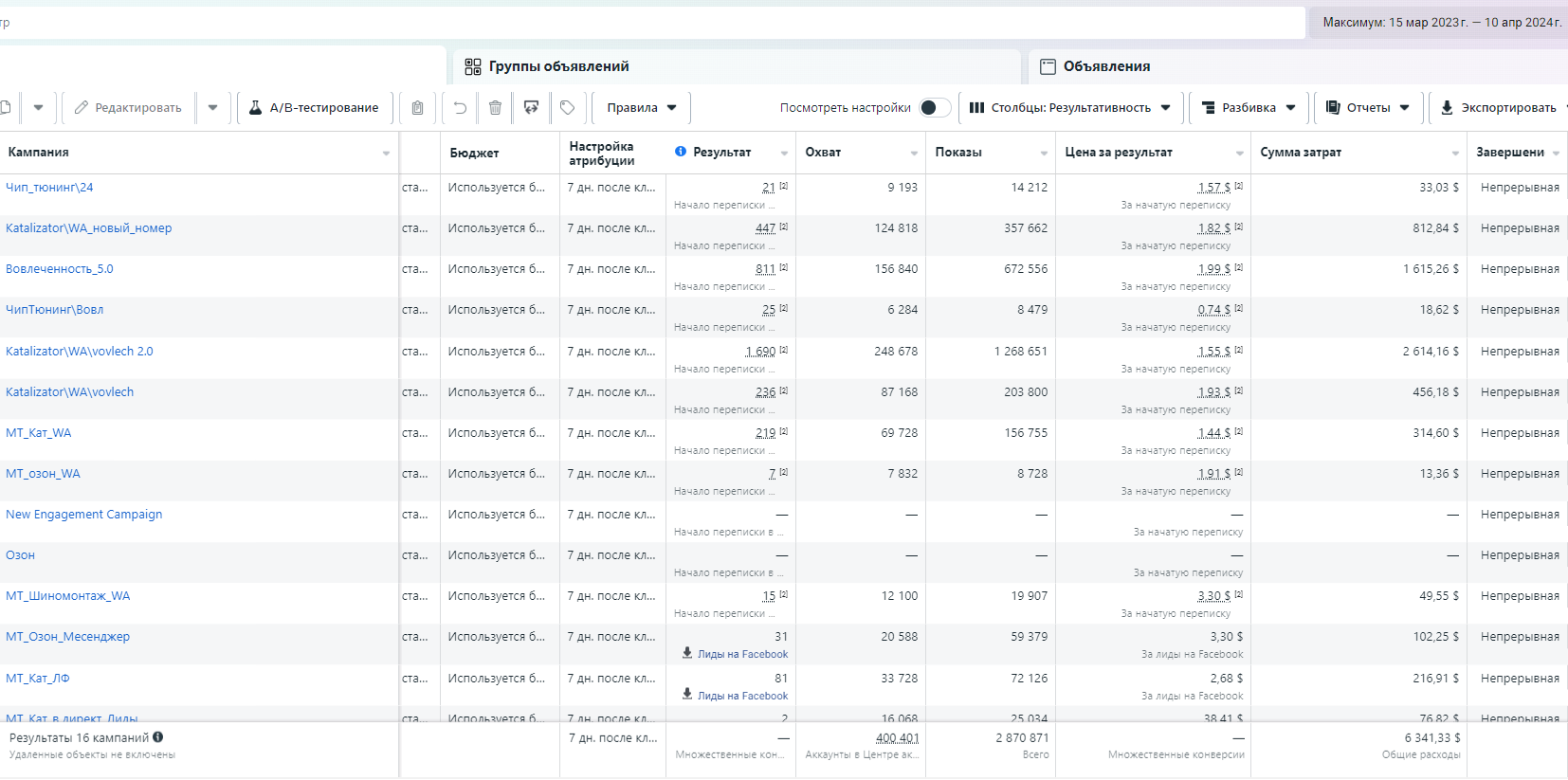 За время работы с проектом мы запускались на разные площадки приема трафика: лид-форма, директ инстаграм, сообщения в группу, мессенджеры.
